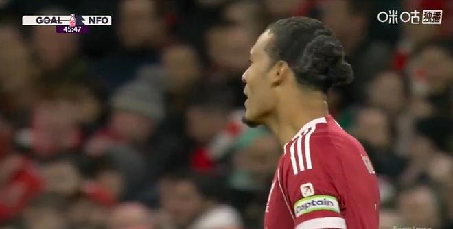 易边再战,下半场开场不到1分钟,诺丁汉森林前场左侧进攻,麦卡利斯特莽撞上抢被对手轻松过掉,内科-威廉斯传中,萨沃纳跟进将球打进利物浦球门,森林客场两球领先。利物浦队长范戴克对于队友的表现非常不满。